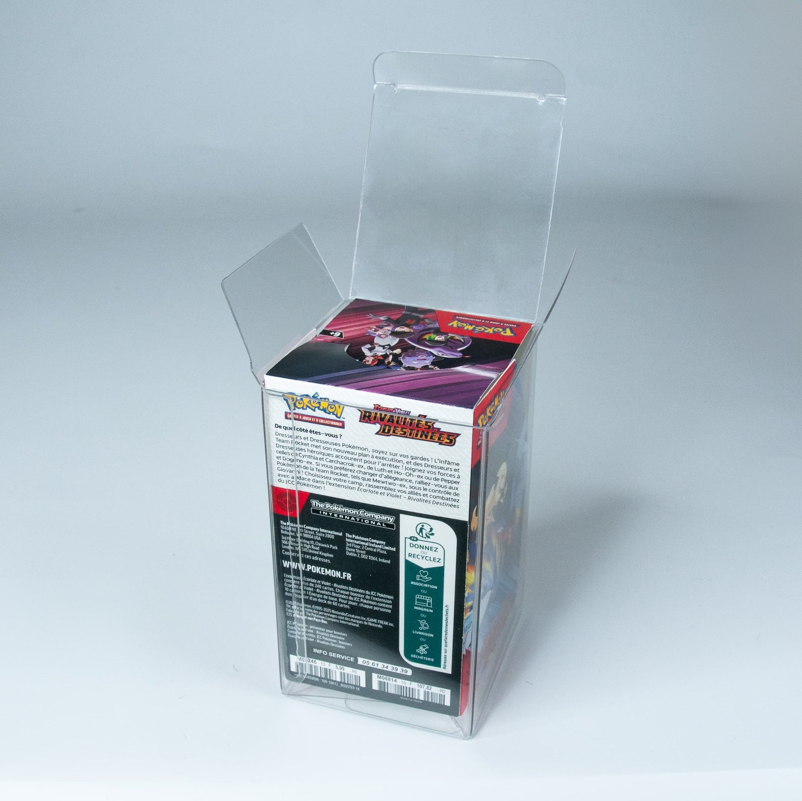 Rear view of MOBO Crystal Box Pokémon Bundle Protector – Transparent 0.5mm PET case showing the back closure and snug fit for sealed Pokémon bundles.